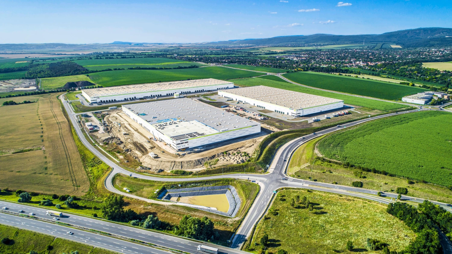 The HelloParks Páty megapark is a key hub for local, national, and international transport. Spanning 87 hectares, the site will ultimately offer 384,000 sqm of industrial space, with 142,000 sqm already completed and another 42,000 sqm set for delivery this year. In addition to the PT2 and PT3 warehouses, the megapark houses the 58,000-sqm PT1 facility — the largest contiguous modern industrial building in the Budapest metro area.